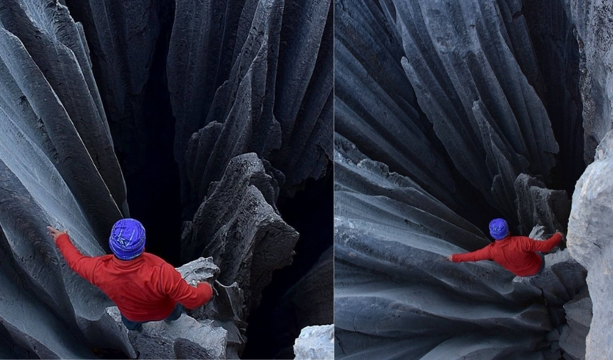 Antalya'nın Akseki ilçesiyle Konya'nın Seydişehir ilçesi sınırlarındaki Giden Gelmez Dağları, 100 metreyi bulan uçurumları, dikey mağaraları ve obruklarıyla oluşturduğu zorlu coğrafi şartlarıyla dikkat çekiyor. Yaban hayatının da zengin olduğu bölgedeki önemli doğa gezgini ve dağcılardan biri olan Mustafa Ünal, keskin kayalıklardan oluşan tehlikeli çukurları görüntüledi.