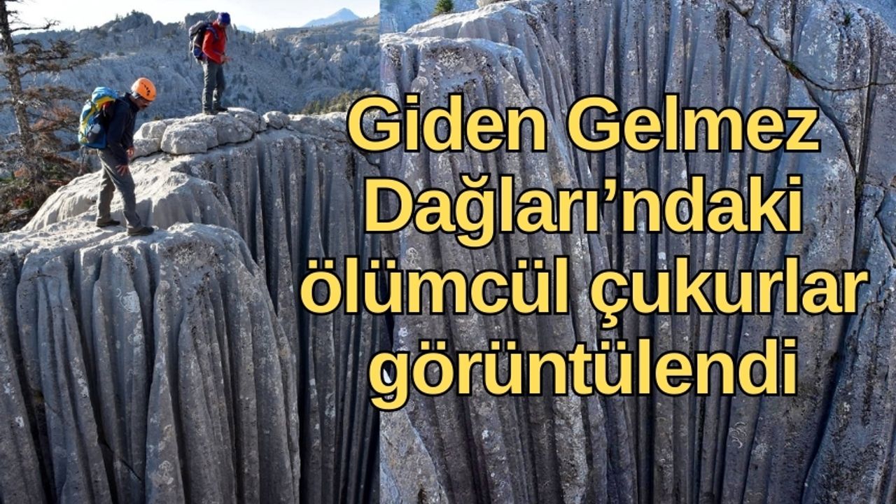 Antalya ve Konya sınırlarında birçok efsaneye de konu olan Giden Gelmez Dağları'nda derinlikleri 100 metreyi aşan keskin kayalık çukurlar, dikey mağaralar ve uçurumlar görüntülendi.