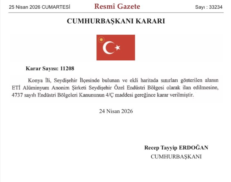 Öte yandan 25 Nisan 2026 tarihinde Resmî Gazete’de yayımlanan Cumhurbaşkanı Kararı ile Seydişehir’deki büyük bir arazi, Eti Alüminyum A.Ş. adına Özel Endüstri Bölgesi ilan edilmişti. Bu kararın, ÇED süreci devam eden boksit madeni genişleme projesi ile doğrudan bir ilgisinin olup olmadığı bilinmiyor. Ancak özel endüstri bölgeleri ile ilgili mevzuat, söz konusu alanlarda yeni yatırım teminatı verilmesini bu yatırımla ilgili ÇED Olumlu veya ÇED Gerekli Değildir kararlarının alınmış olmasını gerekli kılıyor. Akseki Gidengelmez Dağındaki boksit maden ocağı projesinin kapasite artışı için hazırlanan ÇED raporunun 21 Mayıs 2026 tarihinde bakanlık uzmanları tarafından değerlendirilecek olması, bu sürecin özel endüstri bölgesi kararı ile bağlantılı olma ihtimaline işaret ediyor.