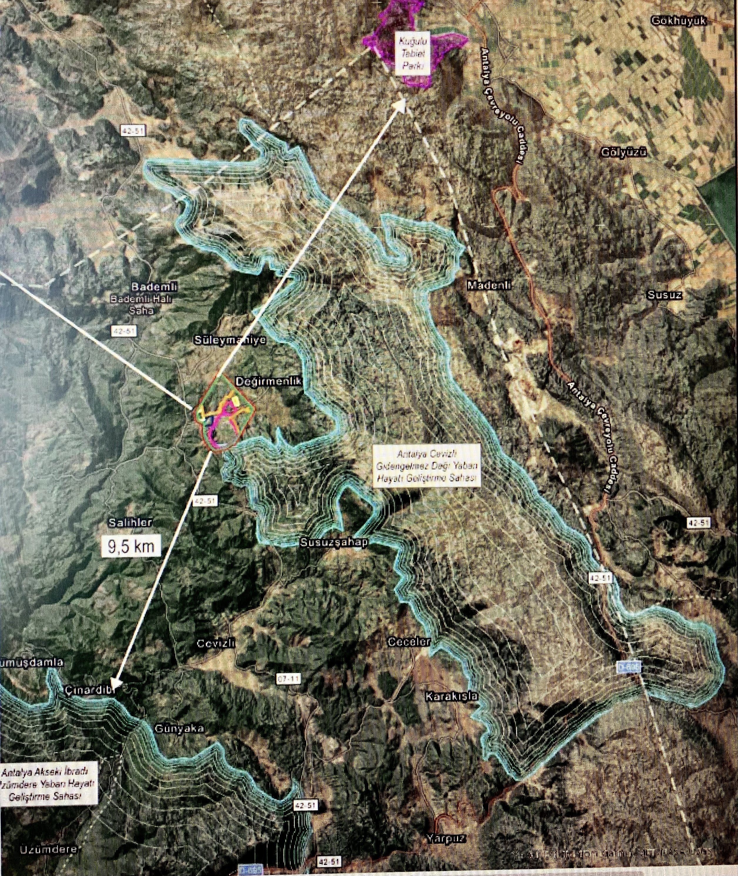 Çevre, Şehircilik ve İklim Değişikliği Bakanlığı’nda yapılacak toplantıda, boksit madeninin genişleme projesi ile ilgili nihai karar verilmesi bekleniyor. Hazırlanan proje dosyasına göre, maden alanının bir kısmı Akseki Cevizli Gidengelmez Dağı YHGS’nı da kapsıyor. Yaban hayatı sonrasında çalışma yapılmayacağı belirtilse de, patlatmalar ve binlerce kamyonun hareketi bölgenin yaban hayatı açısından büyük risk taşıyor.