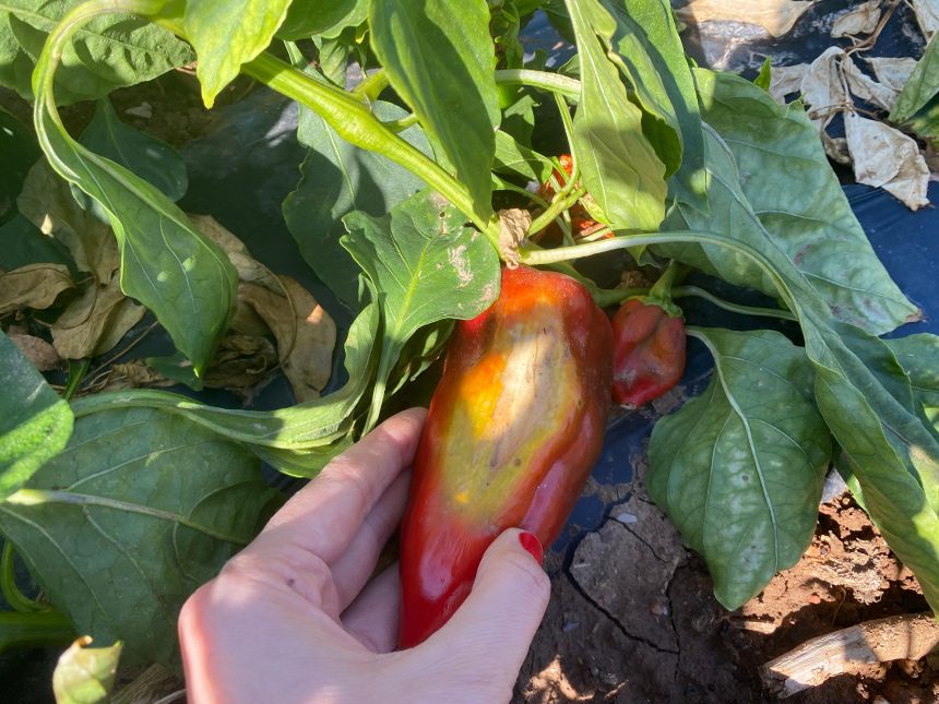Bu yıl yaşanan kuraklık ve aşırı sıcaklıklar kapya biber üreticisini olumsuz etkiledi. Güneş yanığı nedeniyle zarar gören biberler, düşen fiyatlarla birlikte tarlada kaldı. Yaz sezonunda etkisini artıran kurak hava ve yüksek maliyetler üreticiyi zor durumda bıraktı. Ürünü para etmeyen çiftçi kara kara düşünüyor