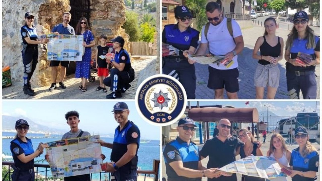 Antalya’nın Alanya ilçesinde polis ekipleri, turistlerin daha güvenli ve huzurlu bir tatil geçirebilmeleri için 40 bin adet dört dilde bilgilendirme broşürü ve ilçede rehbere ihtiyaç duymadan gezebilmelerini ağlayacak haritalar dağıttı. Ayrıca turistlere, bir rehbere ihtiyaç duymadan ilçeyi gezmelerini sağlamak için içeriğinde Alanya’nın tarihi, doğa ve kültürel tanıtımı, ihtiyaç duyulduğunda kamu kurum ve kuruluşlarının telefon numaraları, toplu taşıma araçlarının güzergahları ve olabilecek hırsızlık, yankesicilik, dolandırıcılık olaylarına karşı uyarıların bulunduğu Alanya Kent Haritası dağıtıldı.