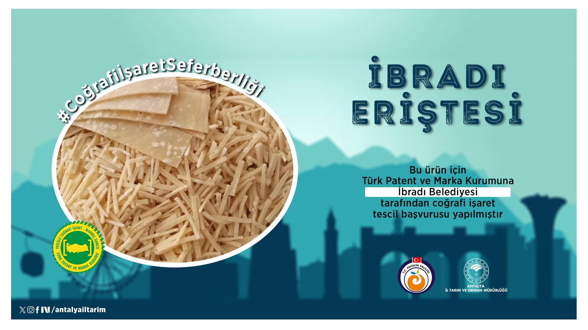 Antalya'nın bereketli topraklarından süzülüp gelen geleneksel lezzetler, Antalya Valiliği’nin kararlı duruşu ve vizyoner projeleriyle kimlik kazanmaya devam ediyor. Kentin sahip olduğu gastronomik mirasın korunması ve gelecek nesillere bozulmadan aktarılması hedefiyle yürütülen "Coğrafi İşaret Seferberliği" kapsamında sıra, İbradı ilçesinin meşhur eriştesine geldi. Antalya İl Tarım ve Orman Müdürlüğü, Tarım ve Orman Bakanı İbrahim Yumaklı’nın destekleri ve Antalya İl Tarım ve Orman Müdürü Fırat Erkal’ın titiz takibiyle, İbradı Eriştesi için tescil dosyasını resmi makamlara sundu. Bu hamleyle, sadece bir gıda maddesinin değil, bir ilçenin kültürünün, emeğinin ve mutfak hafızasının mühürlenmesi hedefleniyor.