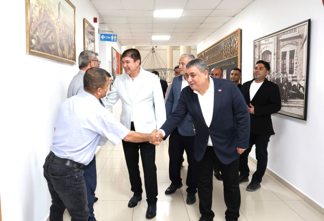Geçtiğimiz aylarda CHP’den AK Parti’ye geçen Aksu Belediye Başkanı İsa Yıldırım makamında AK Partili isimleri ağırlamaya devam ediyor. Bu kez Yıldırım’ı AK Parti Merkez Karar ve Yönetim Kurulu Üyesi, eski Antalya Büyükşehir Belediye Başkanı Menderes Türel ziyaret etti.