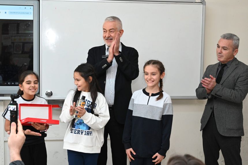 Belediye Başkanı Şükrü Başdeğirmen, öğrencilerin sorularını da yanıtladı. Bir öğrencinin ‘Belediye başkanlığı yapmak kolay mı?' sorusunu cevaplayan Başkan Başdeğirmen, hiçbir mesleğin kolay olmadığını belirterek, severek iş yapmanın öneminden bahsetti. Daha sonra Belediye Başkanı Şükrü Başdeğirmen, öğrencilerin hep bir ağızdan söylediği ‘Benim Babam' şarkısını dinledi.
