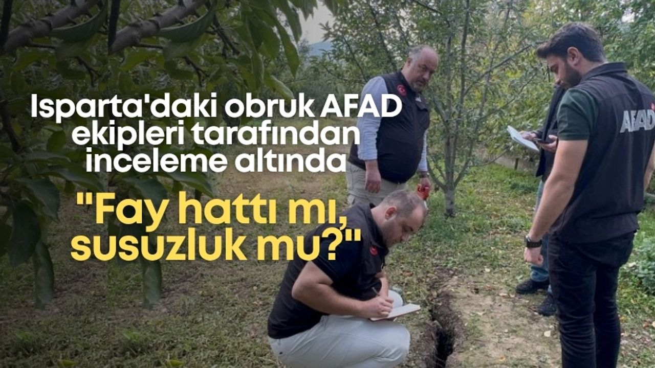 Isparta'nın Eğirdir ilçesi Bağlar Mahallesi Çiçeklikaya mevkiindeki bir elma bahçesinde, yaklaşık 1 metre derinliğinde obruklar meydana geldi. Obrukların çevresinde toprakta çökme izlerine rastlanırken, bahçe içerisinde yer alan evin duvarlarında da gözle görülür çatlaklar oluştu. Olayın ardından bölgeye gelen Isparta İl Afet ve Acil Durum Müdürlüğü (AFAD) ekipleri, alanda ön inceleme çalışması gerçekleştirdi.