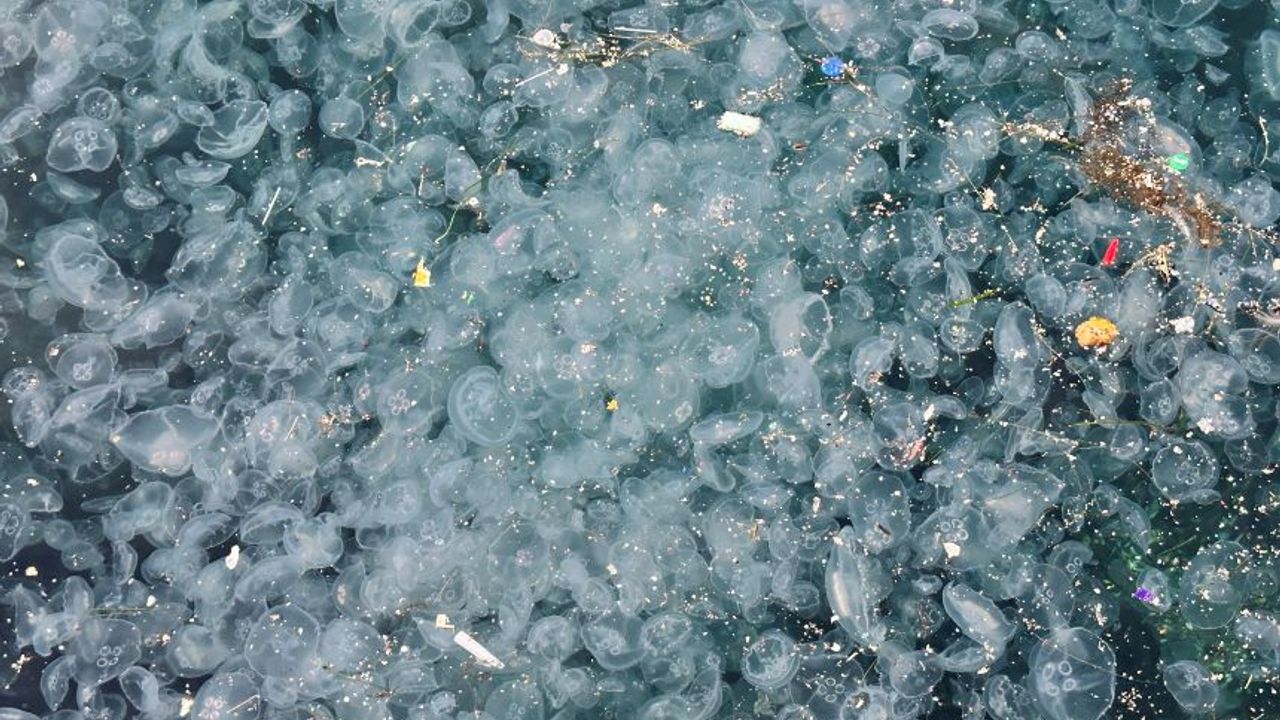 Üsküdar’da binlerce deniz anasının sahili kaplamasıyla deniz adeta beyaza büründü. Evsel atıkların da yoğun olarak görüldüğü sahil, vatandaşların dikkatini çekti.