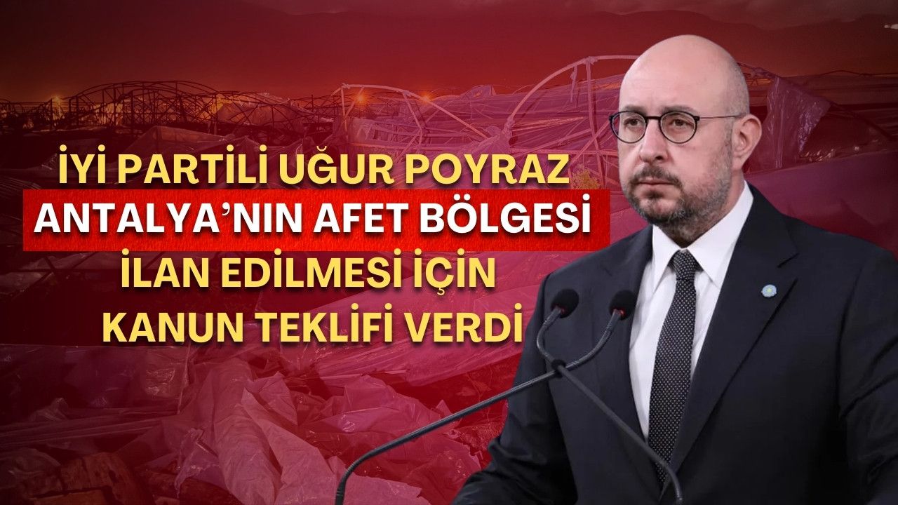 Antalya’da 22 Ocak 2026 Perşembe günü yaşanan sel felaketinin ardından pek çok üretecinin serası sular altında kaldı. Üreticiler, seralarının sular altında kalmasıyla ürünlerinin zarar gördüğünü belirterek, maddi hasarlarının fazla olduğunu vurgulamıştı. İYİ Parti TBMM Grup Başkanvekili ve Antalya Milletvekili Uğur Poyraz ise çiftçilerin mağduriyetini Türkiye Büyük Millet Meclisi (TBMM) gündemine taşıdı.
