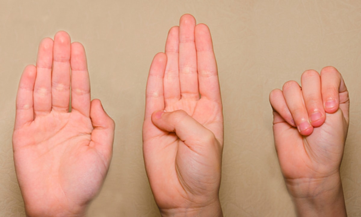 * Ardından diğer dört parmak başparmağın üzerine kapanır.