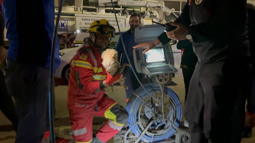 Konya'nın Merkez Karatay ilçesi Fevzi Çakmak Mahallesi Galericiler Sitesi’nde bir galerici esnafının kaybolan "Sütlaç" isimli köpeğinin kanalizasyon borusunda mahsur kaldığı tespit edildi. Esnafın ihbarı üzerine olay yerine Konya Büyükşehir Belediyesi İtfaiye Dairesi Başkanlığı ile KOSKİ Genel Müdürlüğü ekipleri sevk edildi.