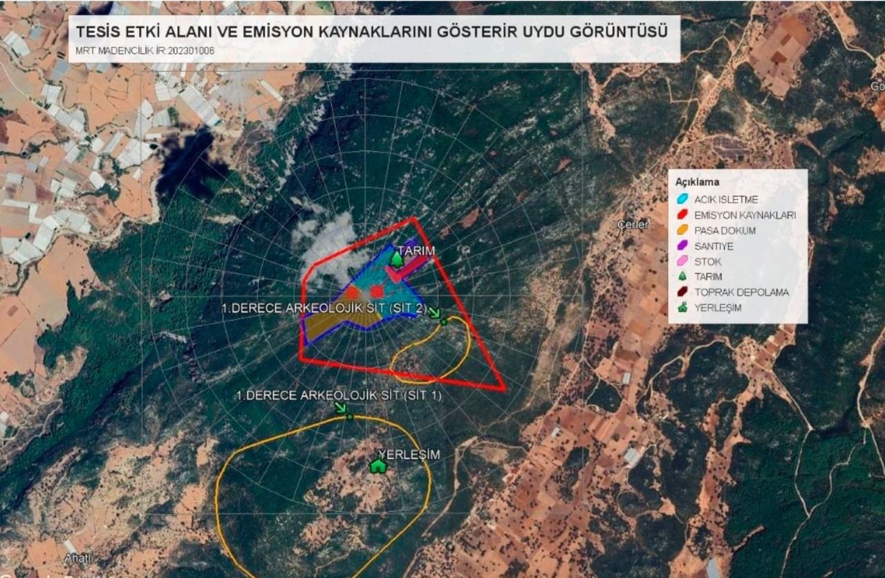 Ruhsat sahasına ilişkin bir detay ise dikkatlerden kaçmadı. 1. derece arkeolojik sit alanı (sit2)’nın yüzde 90’dan fazlasının ruhsat sahası içerisinde kaldığı görüldü. Ayrıca “ÇED Gerekli Değildir” kararı verilen maden çıkarılacak alan ise 1. derece arkeolojik sit sahasına uzaklığının ise 176 metre ve 573 metre mesafede bulunduğuna dikkat çekildi. Proje dosyasında, faaliyet sırasında arkeolojik sit alanlarına müdahale edilmeyeceği, bu alanların sınırlarına girilmeyeceği ve herhangi bir kazı, hafriyat ya da depolama işlemi yapılmayacağı belirtilse de bu durum kamuoyundaki endişeye neden oldu.