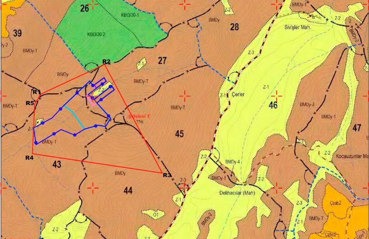 Öte yandan proje sahasının tamamen ormanlık alan içerisinde kaldığı da ortaya çıktı. Antalya Orman Bölge Müdürlüğü sınırlarında yer alan saha, Kaş Orman İşletme Müdürlüğü’ne bağlı 27, 39 ve 43 numaralı bölmelerde bulunuyor. Yaklaşık 24,95 hektarlık üretim alanının tamamının orman vasfında olduğu belirtilirken, bölgede meşe ve sandal ağaçlarının yoğunlukta olduğu ifade edildi.