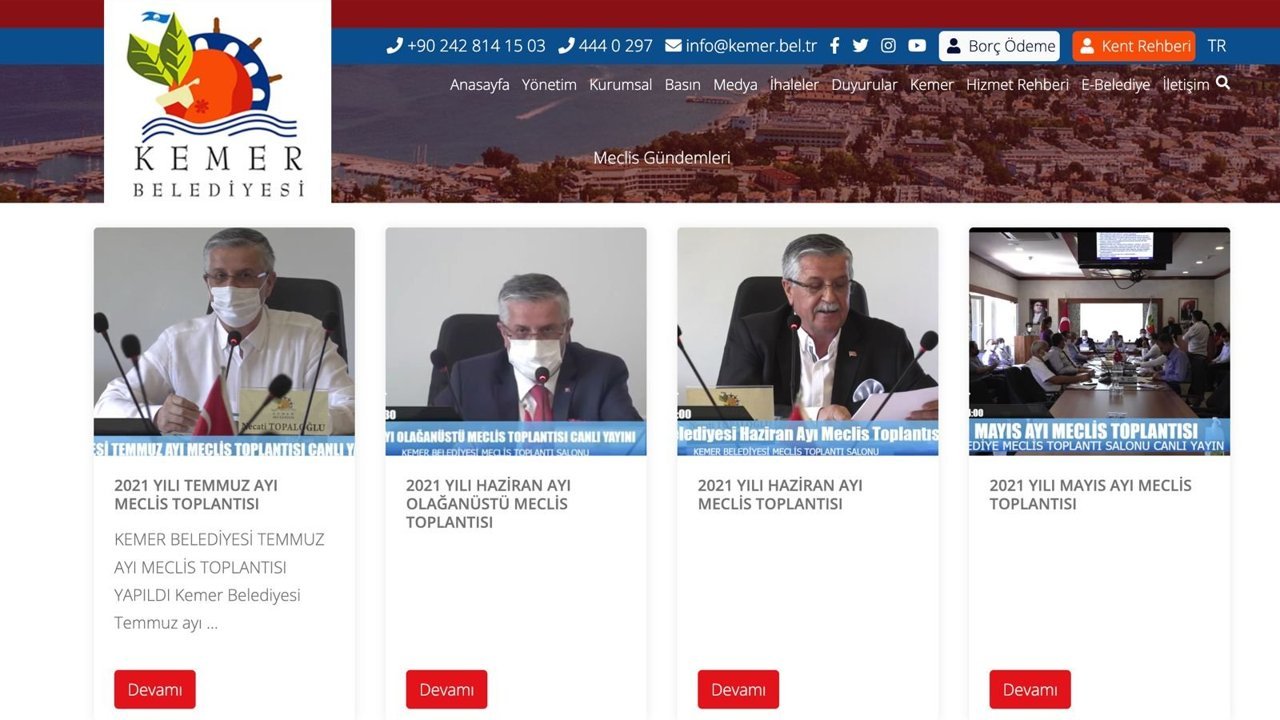Birçok belediye aylık olağan meclis toplantı gündemlerini resmi internet sayfası üzerinden kamuya duyururken, Kemer Belediyesi resmi internet sayfasında bu hizmetin yer almadığı görüldü. Vatandaşlar tarafından yapılan aramada ilk açılan sayfada pandemi dönemi olarak da bilinen 2021 yılına ait maskeli meclis toplantıları yer aldı.