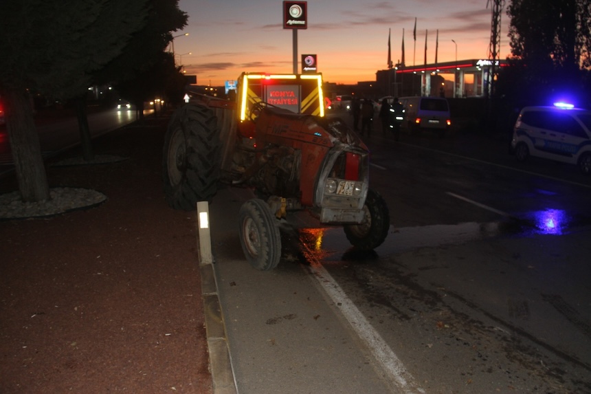 Konya'nın Beyşehir ilçesine bağlı Bahçelievler Mahallesi Konya Caddesi'nde meydana gelen kazada, E.Ü. yönetimindeki 42 B 3181 plakalı otomobil, H.K. idaresindeki 42 NK 265 plakalı traktör ile çarpıştı.