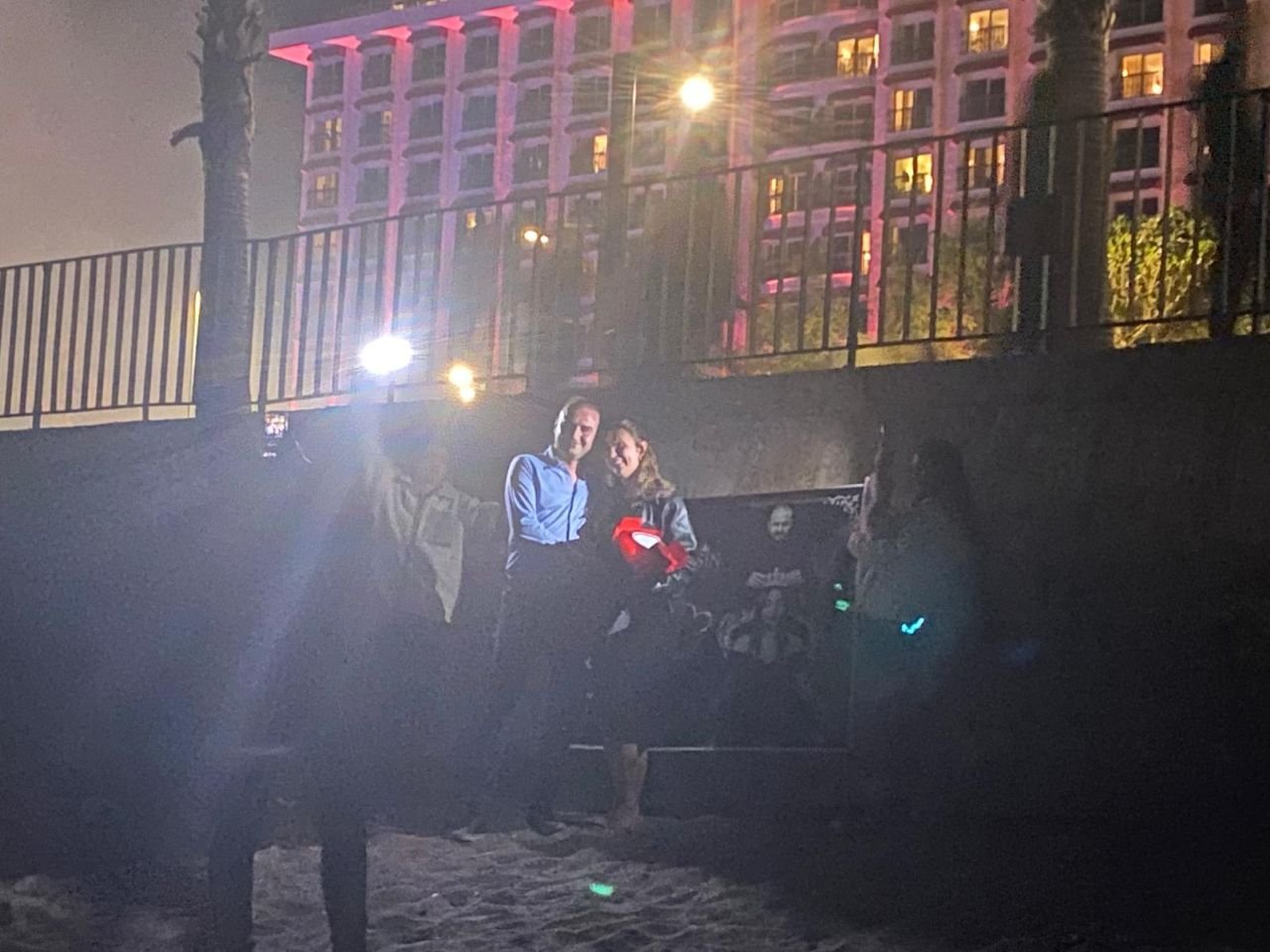 Karşılaştığı sürpriz karşısında şaşkınlığını gizleyemeyen genç kadın, mutluluktan gözyaşlarına hakim olamadı. “Evet” cevabının ardından sahilde bulunan kalabalık çifti alkış yağmuruna tuttu. Yerli ve yabancı turistlerin de eşlik ettiği kutlama, kısa sürede renkli görüntülere sahne oldu.