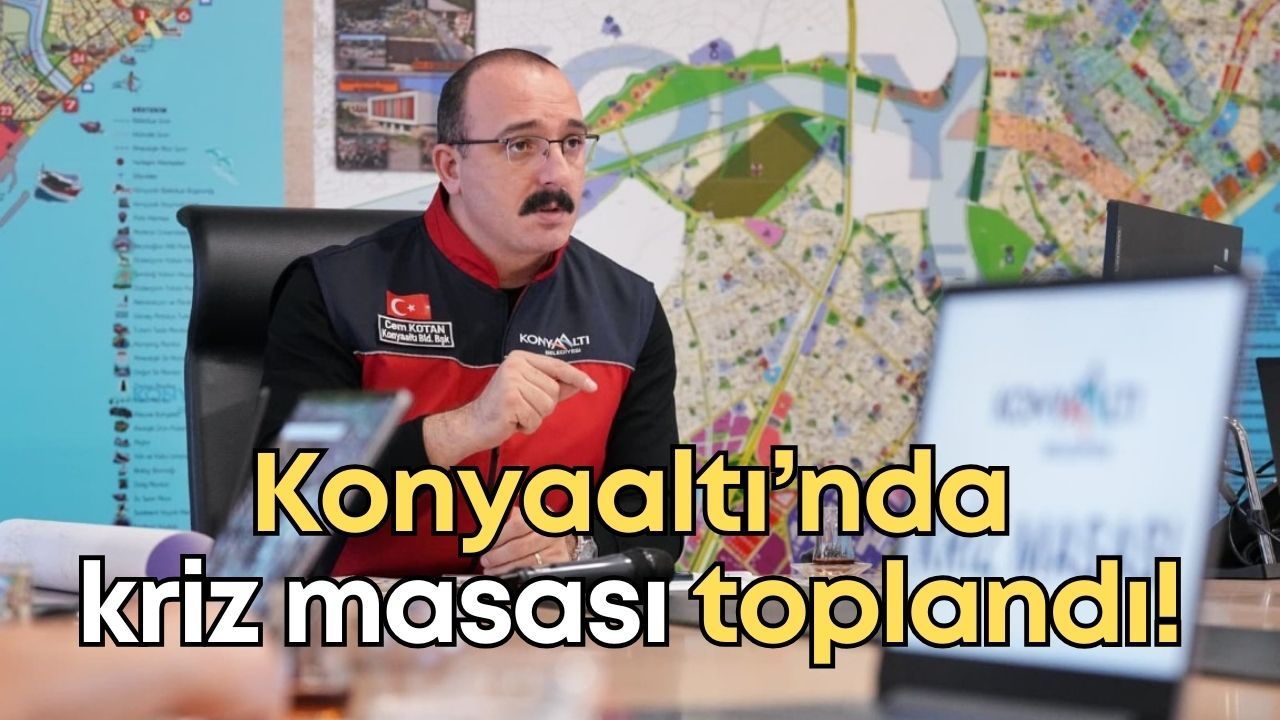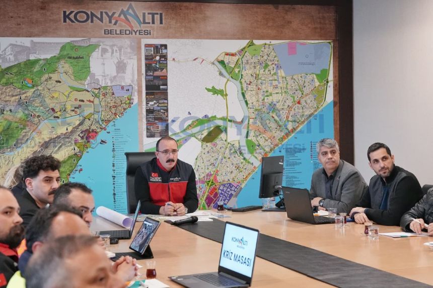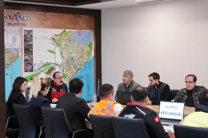 Antalya genelinde yaşamı olumsuz etkileyen yoğun yağış ve fırtına, Konyaaltı ilçesinde ciddi hasarlara yol açtı. Konyaaltı Belediyesi, afetle mücadele çalışmalarını tek merkezden yönetmek amacıyla Kriz Masası’nı acil gündemle topladı. Konyaaltı Belediye Başkanı Cem Kotan’ın başkanlık ettiği toplantıda, belediye başkan yardımcıları ve birim müdürleri hazır bulundu. Toplantının ana gündem maddesini, sahada devam eden tahliye çalışmaları ve vatandaşlardan gelen yardım taleplerinin koordinasyonu oluşturdu.