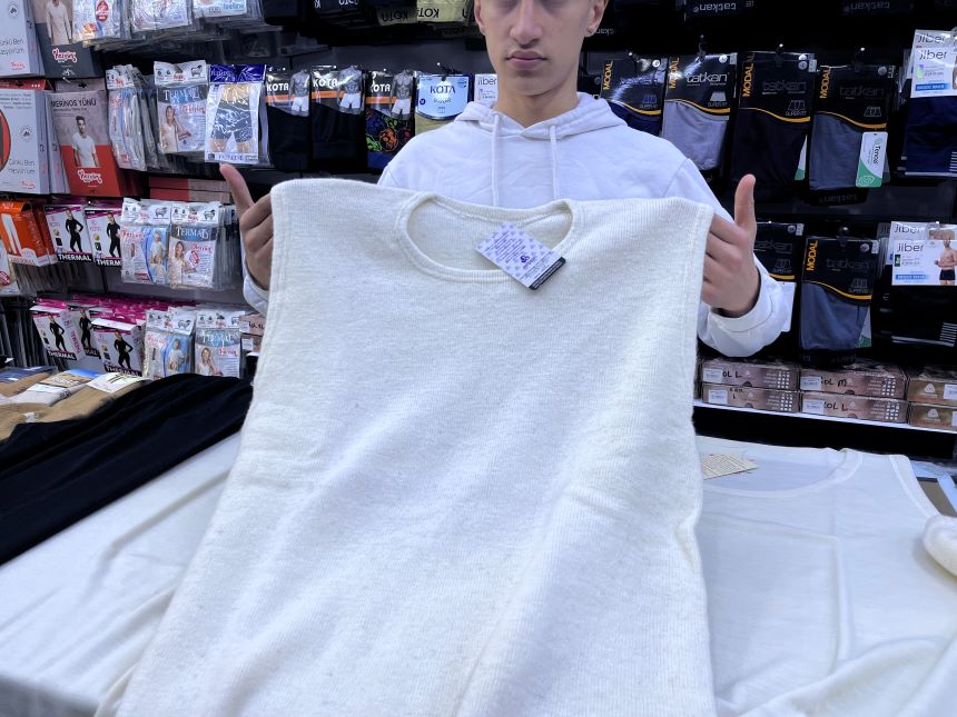 "Müşterilerimiz kendilerine özel istemiş oldukları taleplerine göre ince, kalın veya termal, yün şeklinde olan içlikleri gelip bizden temin edebiliyor. Yün aslında daha çok tercih edilmesi gerekiyor. Yün sağlık açısından da vücuda temas ettiğinde teri emdiğinden dolayı daha çok tercih edilmesi gerekiyor. Fakat gençlerimiz özellikle termali daha yoğun bir şekilde tercih ediyor. Vatandaş özellikle içlik alırken yün olmasına, pamuk olmasına, termalin orijinal olmasına dikkat etmeleri gerekiyor. Polyester, naylon karışımı olan içlikler sağlık açısından da zarar verdiğinden dolayı özellikle bunlara dikkat etmeleri gerekiyor."