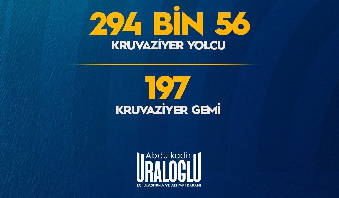 Uraloğlu, Türkiye'nin 1.075 kruvaziyer gemisi ve 1 milyon 710 bin 454 yolcu ile Akdeniz'in en önemli kruvaziyer destinasyonlarından biri haline geldiğini açıkladı. Kuşadası, İstanbul ve Bodrum limanlarının, dünya çapında gelen misafirleri ağırlamaya devam ettiğini belirten Bakan, bu başarıda limanların sunduğu yüksek kaliteli hizmetlerin etkili olduğunu söyledi.