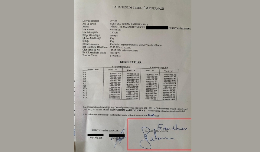 Kaş Çevre ve Kültür Derneği, Orman Genel Müdürlüğü’nün yaklaşık 4 bin m2’lik orman arazisinde verdiği geçiş izninin iptali için Antalya İdare Mahkemesi’nde dava açtı. Eski Bakan Erkan Mumcu’nun sahibi olduğu Egem Eko Turizm Yatırımları AŞ’ye verilen yol izninin, bölgede mevcutta bir imar planı olmadığı için geçersiz olduğu savunulan dava dilekçesinde, hukuka aykırı olduğu öne sürülen idari işlemin yürütmesinin durdurulması ve iptali istendi.