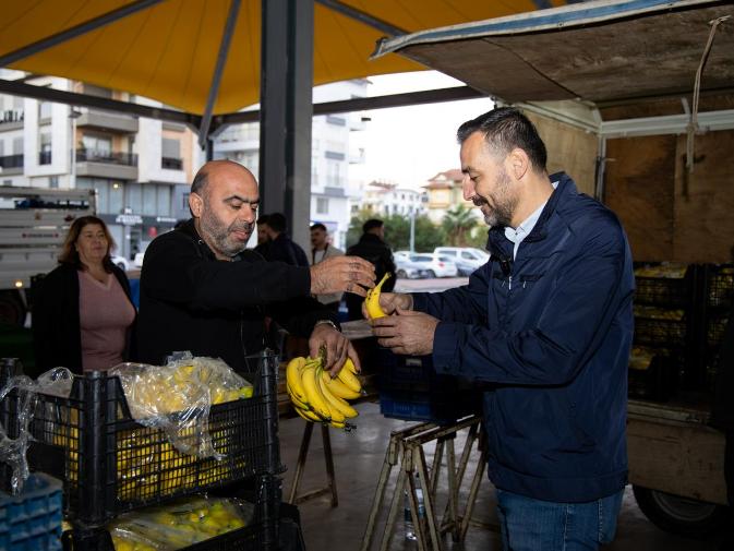 Başkan Vekili Çiçek'in ikinci durağı ise Cumartesi Kapalı Pazar Yeri oldu. Burada üretici ve pazarcı esnafıyla görüştü, tezgahları gezerek ürünler ve güncel sezon koşulları hakkında detaylı bilgi aldı. Ziyaret sırasında dikkat çeken bir hareket sergileyen Başkan Vekili Çiçek, pazar alanına ürün getiren üreticilere bizzat yardım etti. Kasaların taşınmasına destek oldu ve tezgah kurma hazırlıklarına katılarak esnafa yönelik somut desteğini gösterdi.