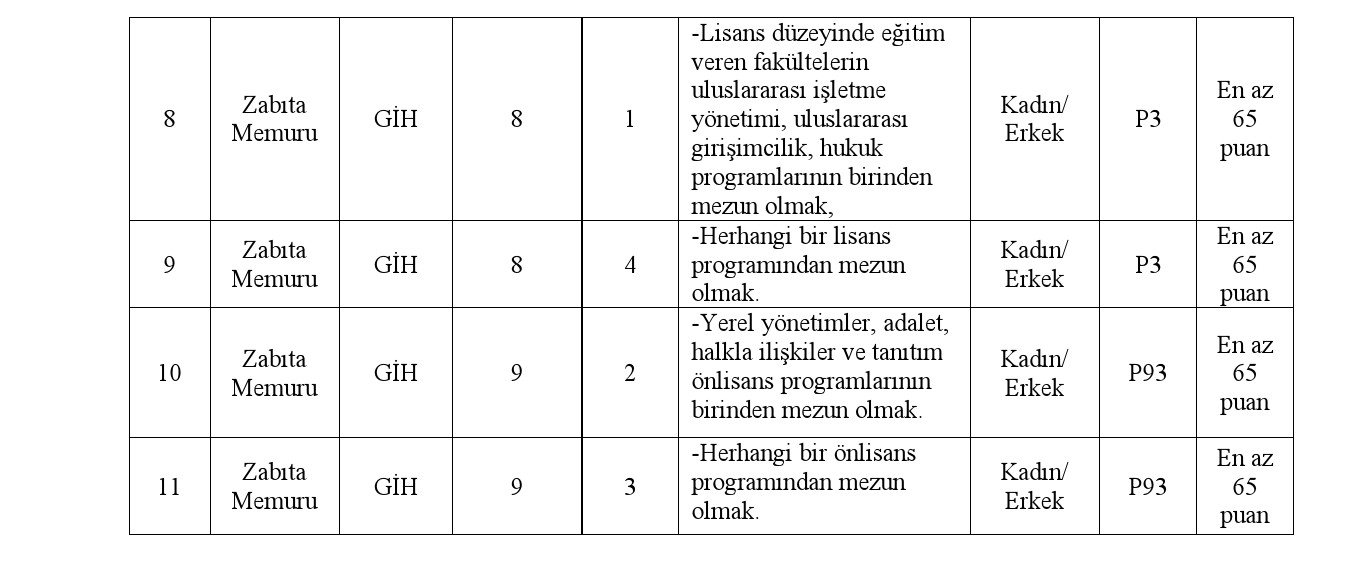 Unvan: Zabıta Memuru ve Memur