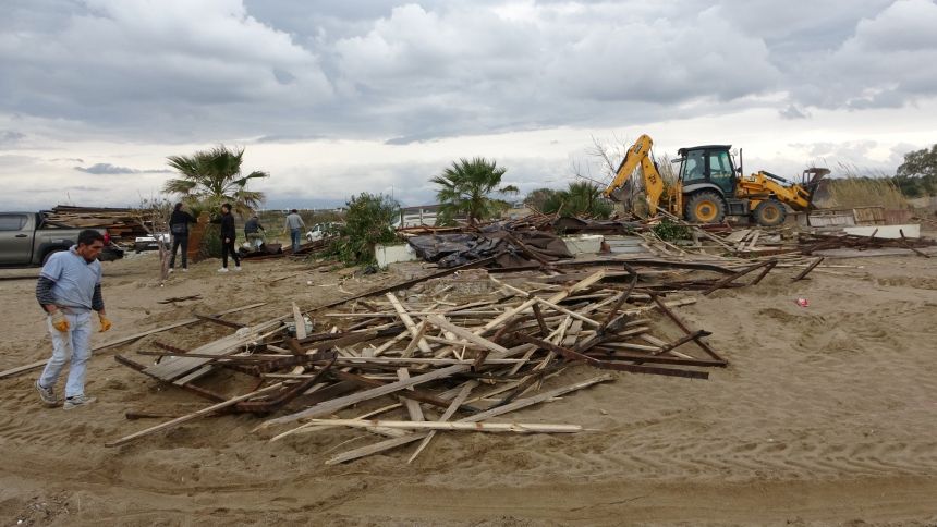 Antalya'nın Manavgat ilçesinde Side büyük plajda bulunan 15 günübirlik işletme Kültür ve Turizm Bakanlığı'nın yıkım kararı doğrultusunda işletme sahipleri tarafından yıkıldı.