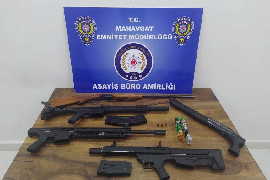 Manavgat Cumhuriyet Başsavcılığının talimatıyla İlçe Emniyet Müdürlüğü Asayiş Büro Amirliği, Kaçakçılık ve Organize Suçlarla Mücadele Büro Amirliği ve Narkotik Büro Amirliği ekiplerince; 25 ekip 116 personelin katılımıyla 19 adrese yönelik eş zamanlı operasyon yapıldı. Belirlenen adreslere düzenlenen operasyonlarda yapılan aramada 4 ruhsatsız av tüfeği, pompalı tüfek, 14 adet dolu kartuş, 3 9*19 mm çapında tabanca fişeği, 1 kullanımlık sentetik kannabinoid A4 maddesi ve cam aparat ele geçirildi. Operasyonda 6 şüpheli gözaltına alındı.