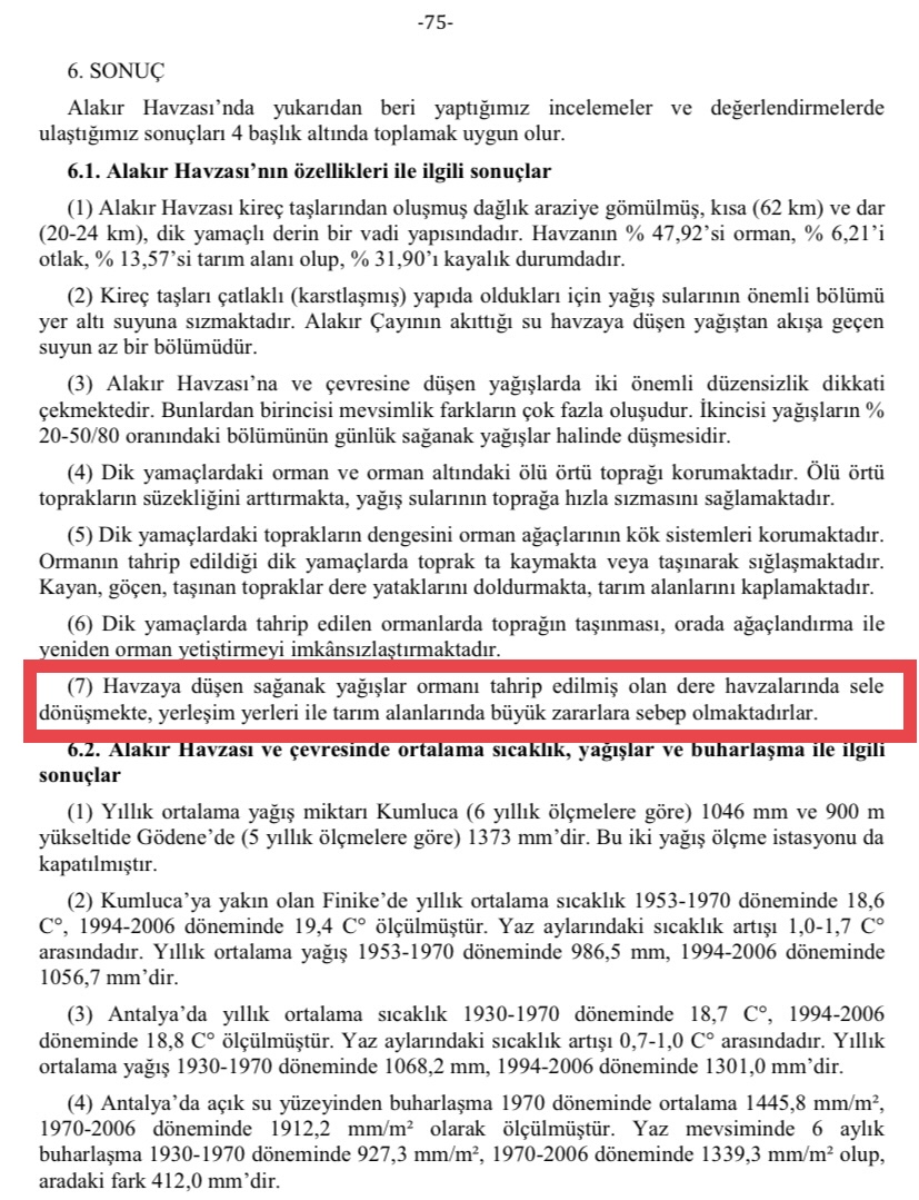 Alakır Vadisi de aşırı müdahalelerle arazi parçalanması yaşanan doğal miras alanlarımızdan biriydi. Türkiye’nin önde gelen toprak bilimi ve ekoloji uzmanlarından biri olan Prof. Dr. M. Doğan Kantarcı, 2011 yılında HES projelerinin kıskacında olduğu bir dönemde, Alakır Vadisinde yaşanan orman ve arazi tahribatına işaret etmiş, kitap olarak da yayımlanan çalışmasında, yaşanması muhtemel sellere karşı uyarılarda bulunmuştu.