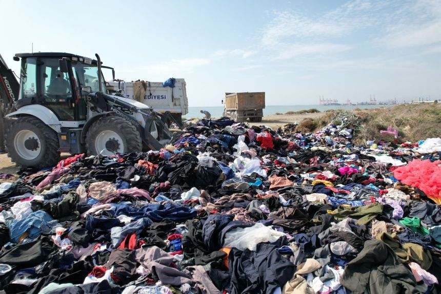 Mersin’in merkez Akdeniz ilçesi sahiline kimliği belirsiz kişi veya kişilerce dökülen tonlarca giysi ve tekstil atığı, çevre kirliliğine neden oldu. Akdeniz Belediyesi ekipleri, iş makineleri desteğiyle başlattıkları temizlik çalışmasıyla sahili atıklardan arındırdı.
