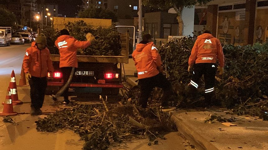 BELEDİYE EKİPLERİ AĞAÇLARI KESTİ