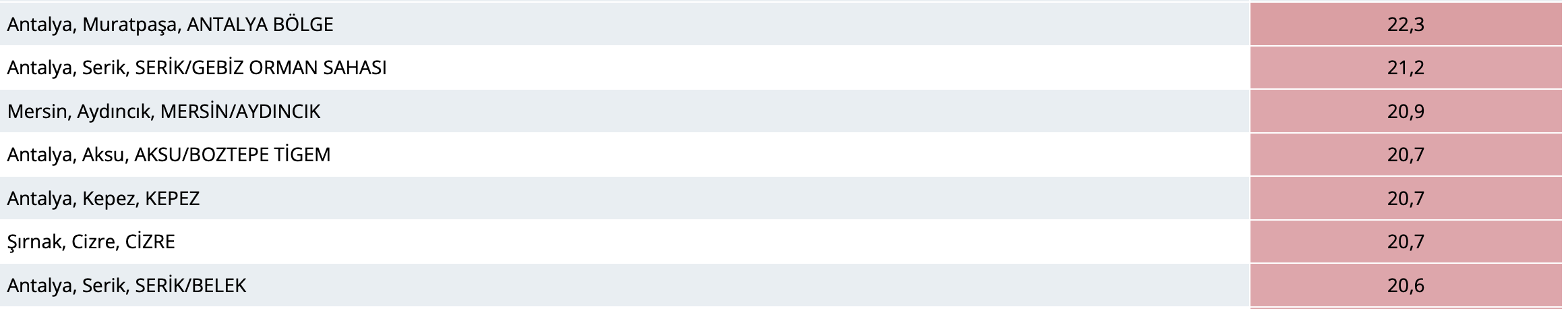 Meteoroloji Genel Müdürlüğü 23 Şubat’ta kaydedilen en yüksek sıcaklık değerlerini açıkladı. Antalya’da sıcaklık 22,3 derece olarak ölçüldü. Antalya, ölçülen bu sıcaklıkla Türkiye’nin en sıcak ili oldu.