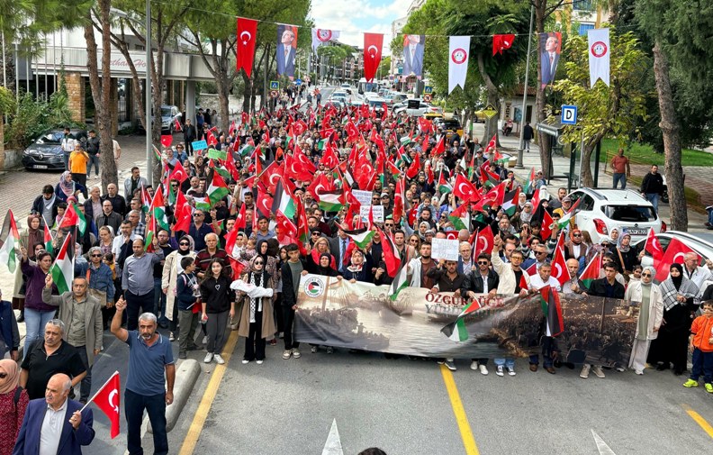 Muğla'nın Menteşe ilçesinde, Filistin’e destek vermek amacıyla "Özgürlüğe yürüyoruz" sloganıyla bir yürüyüş düzenlendi. Akyol Mevkii’nden başlayan kortej, ellerindeki pankartlar ve sloganlarla Kurşunlu Meydanı’na kadar yürüdü. Her yaştan vatandaşın katıldığı yürüyüş, büyük bir coşku içinde geçti ve etkinlik, yapılan basın açıklamasıyla son buldu.