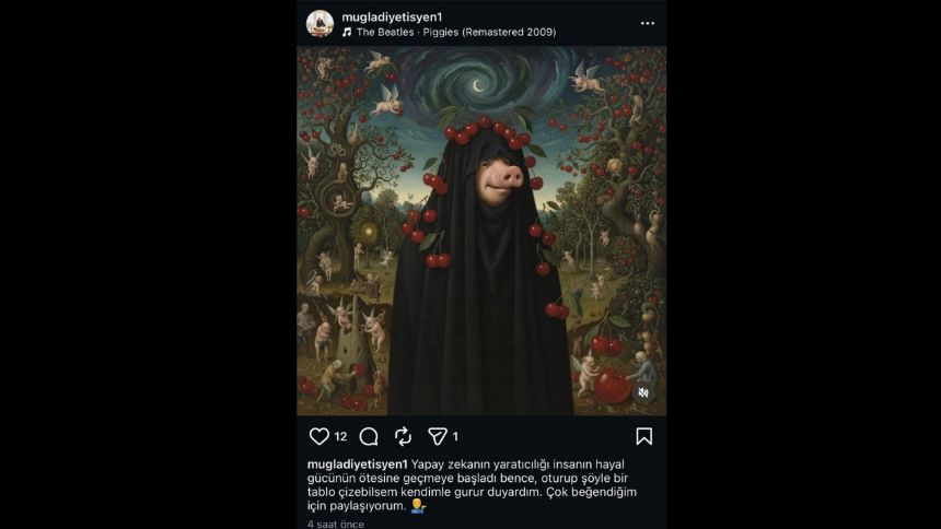 Menteşe ilçesinde diyetisyen Onur K., yapay zeka ile oluşturulmuş, kadın çarşafı giydirilmiş domuz görselini, "Yapay zekanın yaratıcılığı insanın hayal gücünün ötesine geçmeye başladı bence, oturup şöyle bir tablo çizebilsem kendimle gurur duyardım. Çok beğendiğim için paylaşıyorum" notuyla sanal medya hesabından paylaştı. Paylaşım tepkilere neden olurken, Muğla Cumhuriyet Başsavcılığı tarafından başlatılan soruşturma kapsamında diyetisyen Onur K., polis ekipleri tarafından Yenice Mahallesi’ndeki evinde gözaltına alındı. Evde yapılan aramada 1 dizüstü bilgisayar ile 2 cep telefonuna el konuldu. Polisteki işlemlerinin ardından adliyeye sevk edilen Onur K., yurt dışı çıkış yasağı uygulanarak adli kontrol şartı ile serbest bırakıldı.
