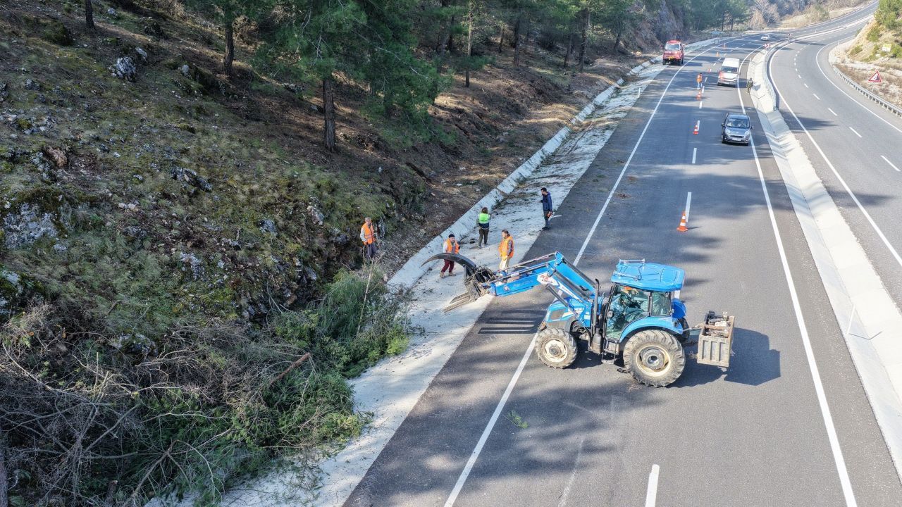 Orman yangınlarıyla mücadelede "önleyici faaliyetler" kapsamında yürütülen çalışmalar, Muğla Orman Bölge Müdürlüğü koordinesinde aralıksız devam ediyor. Muhtemel bir yangının karayolundan ormanlık alanlara sıçramasını engellemek amacıyla başlatılan temizlik seferberliğinde, kritik güzergahlardan biri olan Muğla-Denizli karayolu mercek altına alındı.