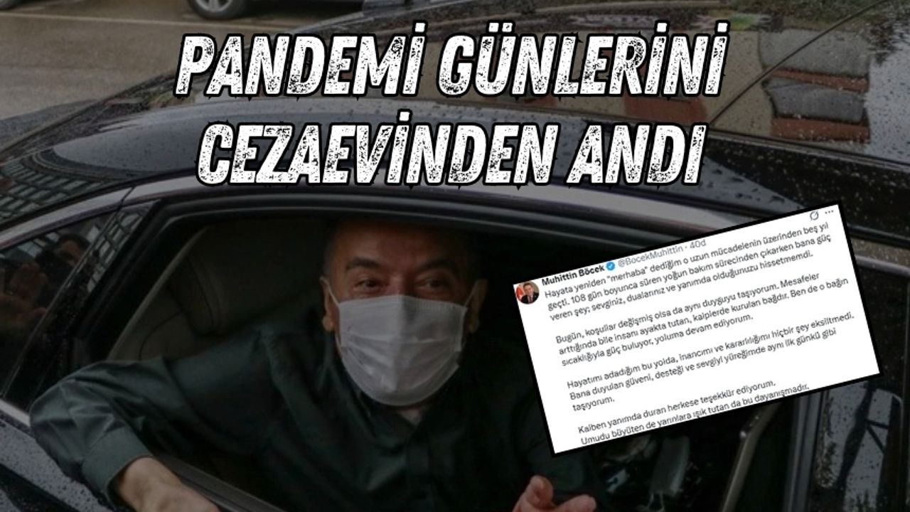 Rüşvet ve yolsuzluk soruşturması kapsamında 5 Temmuz’da tutuklanan Muhitin Böcek, şuan günlük 22 ilaç kullanıyor. Tutuklu başkan Böcek, cezaevinden pandemi günlerini andı. Böcek, paylaştığı mesajda, “Hayata yeniden "merhaba" dediğim o uzun mücadelenin üzerinden beş yıl geçti. 108 gün boyunca süren yoğun bakım sürecinden çıkarken bana güç veren şey; sevginiz, dualarınız ve yanımda olduğunuzu hissetmemdi. Bugün, koşullar değişmiş olsa da aynı duyguyu taşıyorum. Mesafeler arttığında bile insanı ayakta tutan, kalplerde kurulan bağdır” dedi.