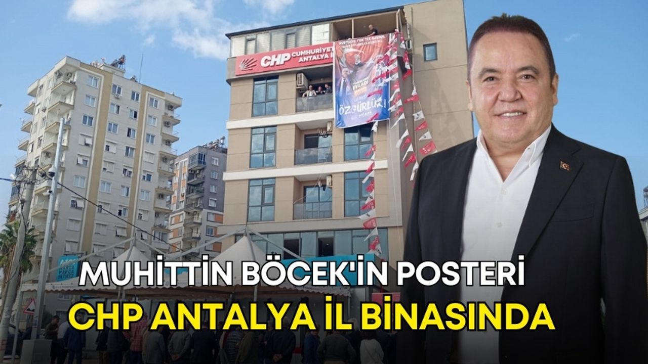 Başkan Muhittin Böcek’in tutukluğuna tepki gösteren CHP’liler Antalya İl Başkanlığı binasına Muhittin Böcek'in posterini astı. Posterde Başkan Böcek ile CHP Genel Başkanı Özgür Özel’in yer aldığı 31 Mart 2024 Yerel Seçimleri zamanından kalan bir fotoğraf ile Başkan Böcek’in lakabı olan “Torosların Evladı” yazısı yer aldı. Böcek hakkındaki iddianame tutukluluğun üzerinden 142 gün geçmesine rağmen hala hazırlanmadı.