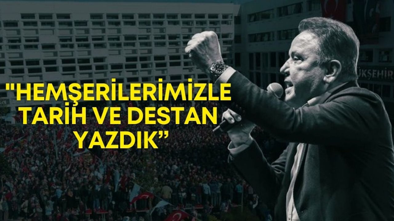 Antalya’nın üst süte ikinci kez seçilen ilk belediye başkanı olduğunu ve 31 Mart 2024 Yerel Seçimleri’nde CHP olarak büyük bir destan yazdıklarını belirten Böcek, “Çünkü biz Antalya İttifakı’mızla bir tarih ve destan yazdık. O destan, bizi hemşehrilerimizle ebedi bir minnet ve vefa bağıyla bağlamıştır. Ben, sen yok biz varız. Biz birlikte güçlüyüz. Sevgi ve hasretle” diye konuştu.