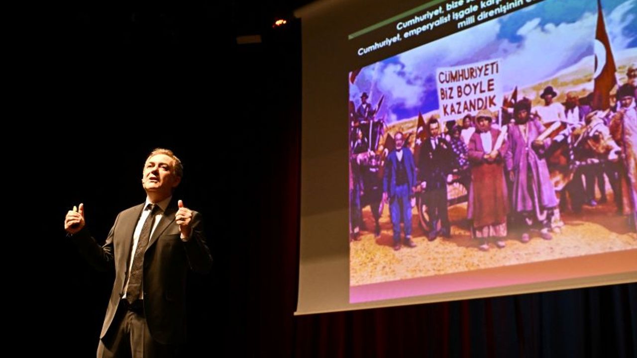 Muratpaşa Belediyesi, Cumhuriyet Bayramı’nın 102’nci yıl dönümünde tarihçi – yazar Sinan Meydan’ı Antalyalılarla bir araya getirdi. Türkan Şoray Kültür Merkezi’nde gerçekleşen programa Başkan Uysal’ın yanı sıra CHP Antalya İl Başkanı Nail Kamacı, CHP Muratpaşa İlçe Başkanı Can Okan Kıran, belediye meclis üyeleri ve çok sayıda kent sakini katıldı. ‘Adım Adım Cumhuriyet’ isimli söyleşide Meydan, Türkiye Cumhuriyeti’nin kuruluş süreci, Mustafa Kemal Atatürk ve silah arkadaşlarının devrimci mücadelesi ve Cumhuriyet’in bugüne taşıdığı anlam üzerine konuştu.