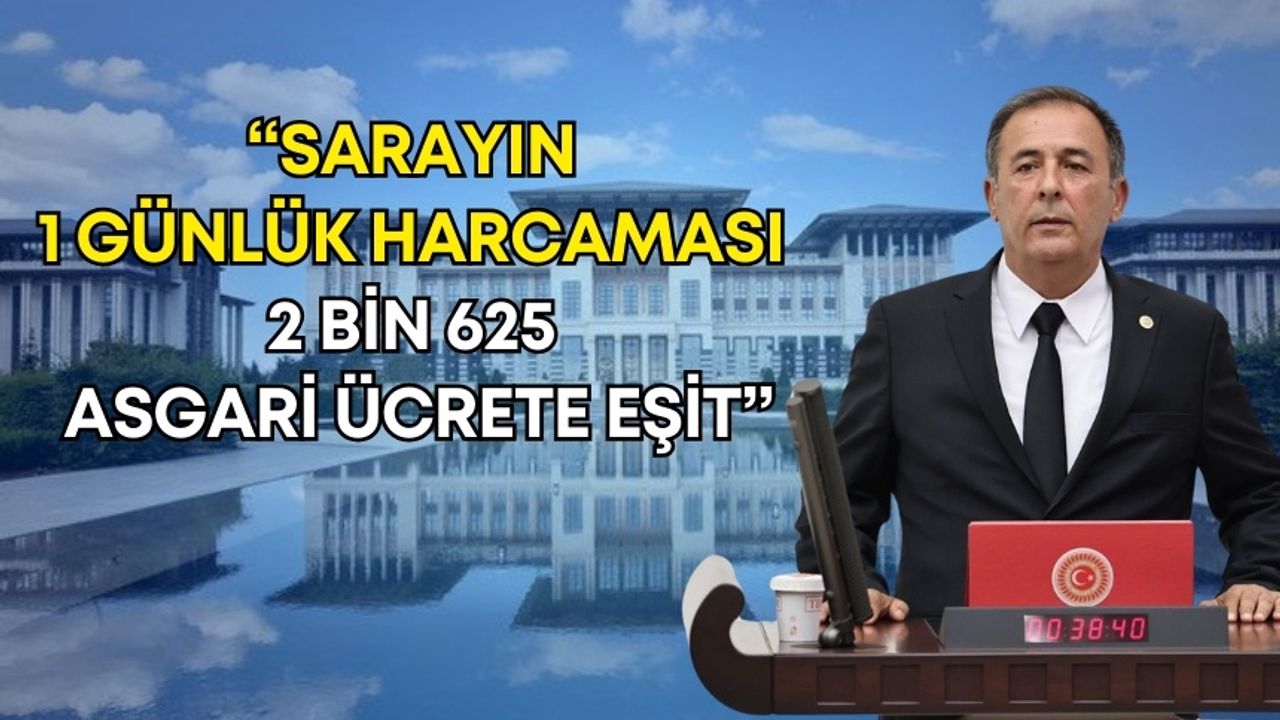 “Bu bütçe ile halkın fukaralığına karşı sarayın ihtişamını artmaktadır. Cumhurbaşkanı Saray’ının 2026 yılı bütçesi 21 milyar 282 milyon 534 bin lira bu sarayın bir günlük harcamasının 58 milyon lira olduğunu gösteriyor. Daha açık bir anlatımla sarayın 1 günlük harcaması 2 bin 625 asgari ücrete, 3 bin 450 emekli maaşına denk geliyor. Yani bir asgari ücretli 218 yıl çalışırsa sarayın 1 günlük harcamasını karşılayacak. Daha başka bir deyimle 3 asgari ücretli 63’er yıl çalışarak sarayın 1 günlük harcamasını karşılayacak.”