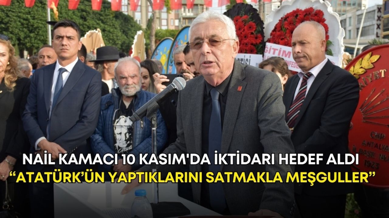 Cumhuriyet meydanında çelenk sunumun ardından konuşma yapan Cumhuriyet Halk Partisi Antalya İl Başkanı Nail Kamacı, Ulu Önder Gazi Mustafa Kemal Atatürk’ü saygıyla anarak, “Bugün Burada mazlum uluslara örnek olmuş, Türk milletinin bağımsızlığını kazanmasında ve Türkiye Cumhuriyeti’nin kuruluşunda önderlik yapmış, büyük önder Gazi Mustafa Kemal Atatürk'ün aramızdan ayrılışının 87. yılını Saygıyla, sevgiyle özlemle anıyoruz” dedi.