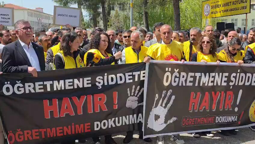 Eğitim çalışanlarının sahipsiz olmadığını haykıran Genel Başkan Yardımcısı Mesut Öner, “Öğretmene uzanan el, geleceğe uzanmıştır” diyerek tepkisini en sert şekilde gösterdi. Milli Eğitim Bakanlığı (MEB) yetkililerine seslenen sendika üyeleri, okullarda güvenliğin tam olarak tesis edilebilmesi için eğitim kurumlarının geçici bir süreyle tatil edilmesi gerektiğini savundu.