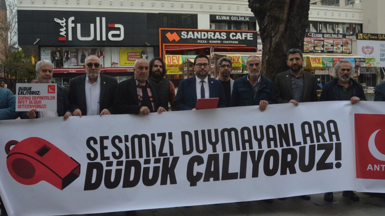 Saadet Partisi (SP) Antalya İl Başkanlığı, 6 Şubat depremlerinin yıldönümünde sembolik bir eyleme imza attı. İl Başkanı Mehmet Fatih Tekin, "Sesimizi duymayanlara düdük çalıyoruz" diyerek kamu yönetimindeki ihmal ve rant düzenine karşı sert eleştirilerde bulundu.