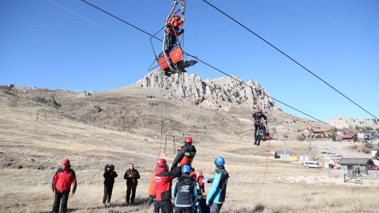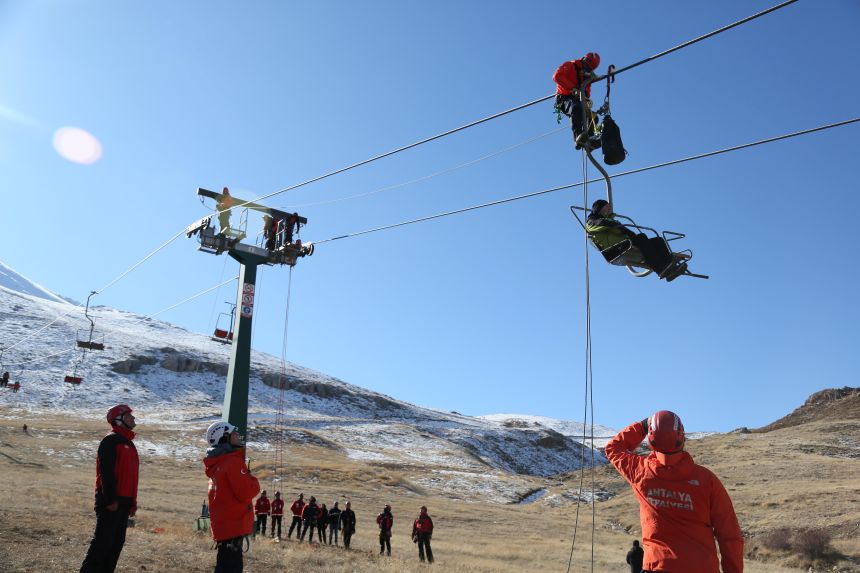 Antalya'nın Konyaaltı ilçesi Saklıkent Kayak Merkezi'nde, Jandarma Arama Kurtarma (JAK) Tim Komutanlığı koordinesinde, teleferikte mahsur kalanları kurtarma tatbikatı başarıyla tamamlandı.