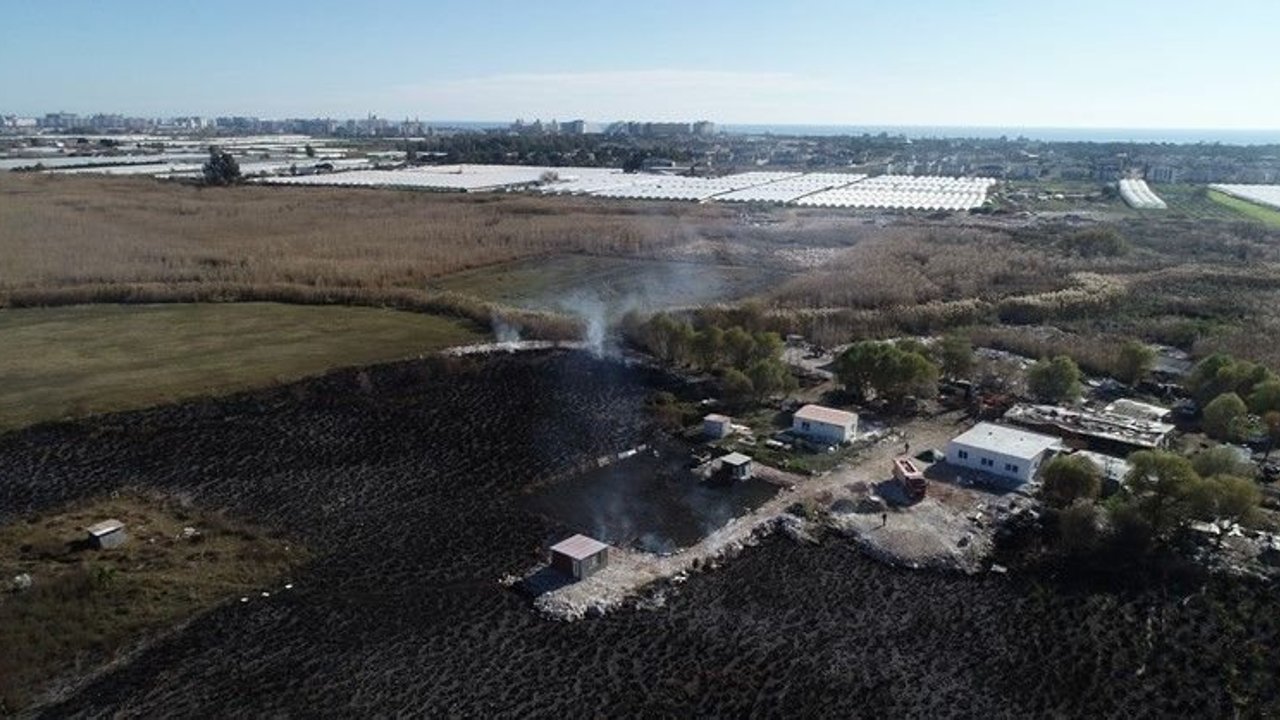 Muratpaşa ilçesine bağlı Güzeloba Mahallesi'ndeki sazlık alanda, öğle saatlerinde yangın başladı. Durumun bildirilmesi üzerine Yamansaz olarak bilinen bölgeye gelen itfaiye ekipleri, yangına müdahale etti. Yangın, boş arazinin etrafındaki prefabrik yerleşim yerlerine yaklaşmadan kontrol altına alınıp söndürüldü. Alevlerden geriye, rengi siyaha dönen sazlık alan kaldı. DHA