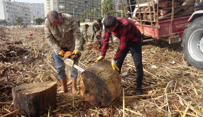 Kışlık odun için sahile geldiklerini ve çok miktarda çıktığını anlatan vatandaşlardan Osman Akkaya, "Dağlık köy ve arazilerdeki odunları sel sahile getirdi. Dereden kıyıya vuruyor, biz de kesiyoruz. Biraz zahmetli ama yapacak bir şey yok" dedi.