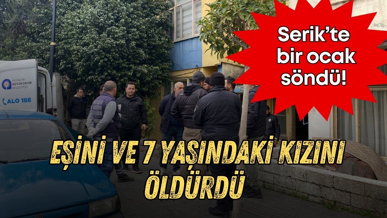 Antalya'nın Serik ilçesinde komşuların ihbarı üzerine harekete geçen polis ve sağlık ekipleri evde anne ve 7 yaşındaki kızını bıçakla öldürülmüş halde buldu. Olay sonrası güvenlik görevlisi olan şüpheli baba gece gittiği Ankara'da polise teslim oldu.