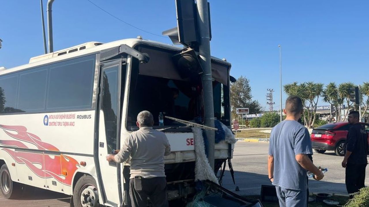 Antalya-Alanya D400 kara yolu üzerindeki Dikmen Kavşağı'nda meydana gelen kazada, Hüsnü T. yönetimindeki 07 YDM 09 plakalı şehir içi yolcu midibüsü ile sürücüsü henüz öğrenilemeyen 33 AAY 224 plakalı otomobil çarpıştı. Çarpışmanın etkisiyle kontrolden çıkan midibüs, trafik ışığı direğine çarparak durabildi.