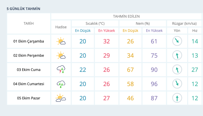 Antalya’da sonbaharın en etkili yağışı için tarih netleşti. Meteoroloji’den alınan tahminlere göre perşembe günü akşam saatlerinden itibaren başlayacak sağanak yağmur, cuma günü kent genelinde etkisini artıracak. Kentte haftalardır 33-34 derece seviyelerinde seyreden hava sıcaklıklarının, yağışla birlikte 25-26 derecelere kadar gerilemesi bekleniyor.