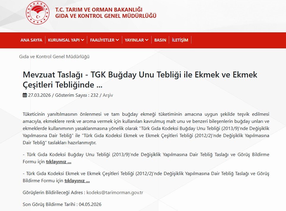 Bakanlık tarafından yapılan açıklamada, “Tüketicinin yanıltılmasının önlenmesi ve tam buğday ekmeği tüketiminin amacına uygun şekilde teşvik edilmesi amacıyla, ekmeklere renk ve aroma vermek için kullanılan kavrulmuş malt unu ve benzeri bileşenlerin buğday unları ve ekmeklerde kullanımının yasaklanmasına yönelik olarak "Türk Gıda Kodeksi Buğday Unu Tebliği (2013/9)'nde Değişiklik Yapılmasına Dair Tebliğ" ile "Türk Gıda Kodeksi Ekmek ve Ekmek Çeşitleri Tebliği (2012/2)'nde Değişiklik Yapılmasına Dair Tebliğ" taslakları hazırlanmıştır” ifadeleri kullanıldı.