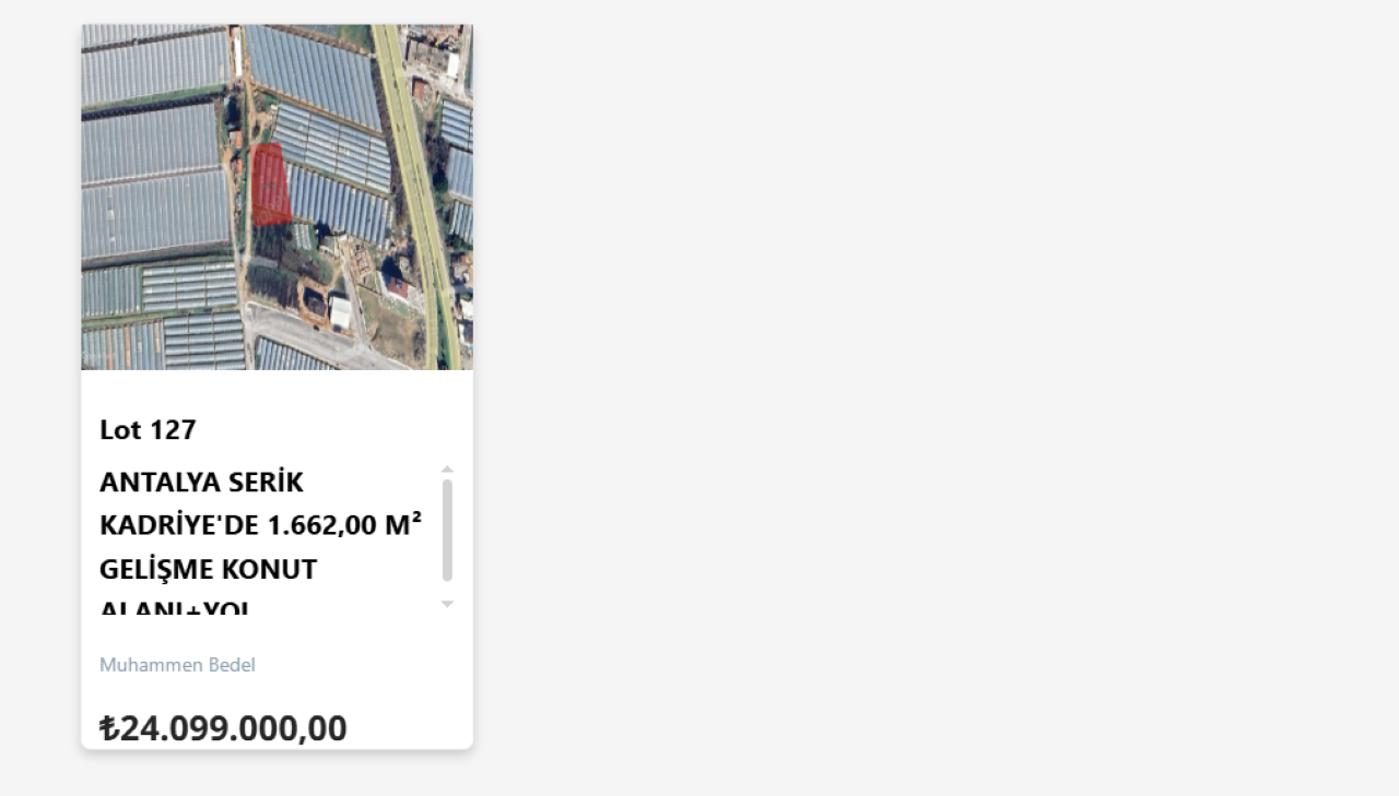 Antalya listesindeki en dikkat çekici taşınmazlardan biri de Lot No: 127 numarasıyla satışa sunulan Serik Kadriye Mahallesi’ndeki parse l oldu. 213 ada 10 parselde yer alan arsanın büyüklüğü 1.662 metrekare. Muhammen bedeli 24 milyon 99 bin TL, teminat tutarı ise 2 milyon TL olarak açıklandı.